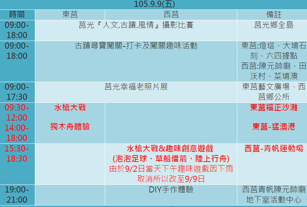 9/9日莒光海洋觀光年因氣候不佳活動時間變更