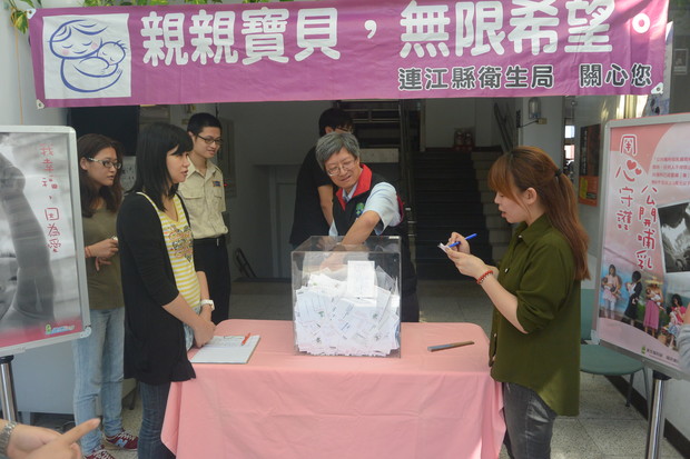 連江縣哺集乳室有獎徵答活動中獎名單 --閱讀人次 : 1033 本次抽獎活動原訂於9月23日辦理公開抽獎,配合縣運及頒獎典禮延至9月26日抽獎,共計抽出50名,得獎者將由衛生局主動依得獎者聯絡地址郵寄,請鄉親勿至衛生局領取。