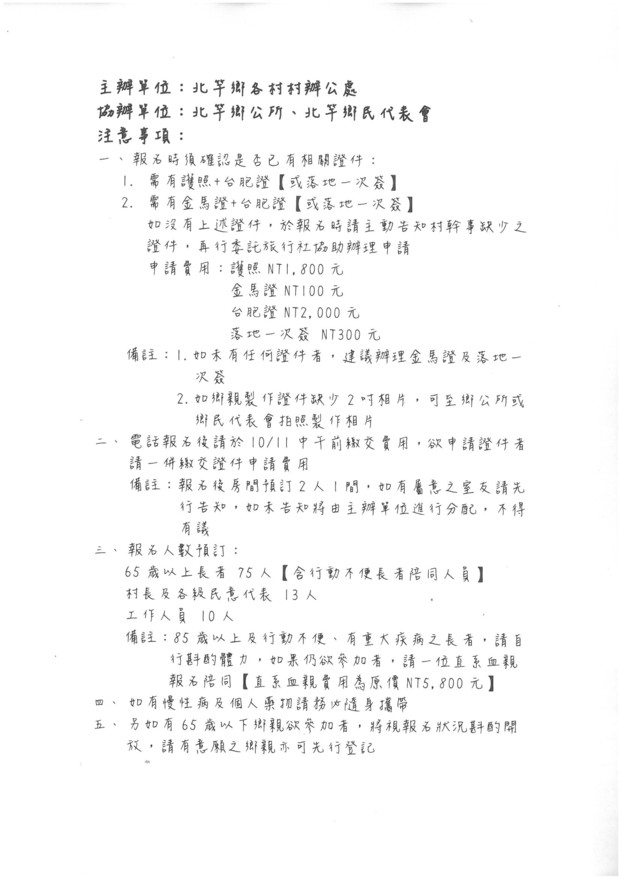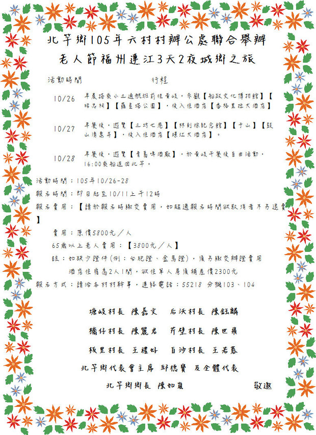 北竿鄉105年老人節福州連江3天2夜城鄉之旅