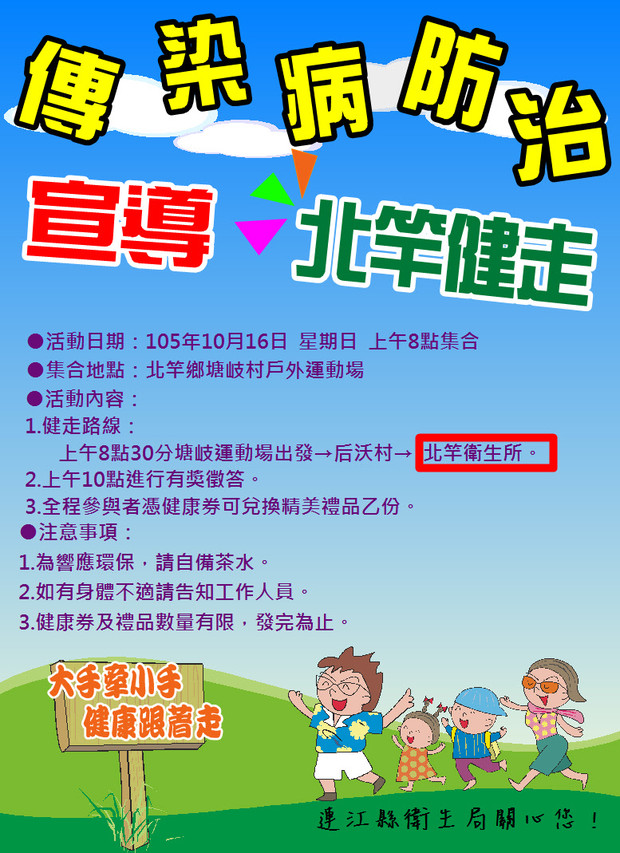 一、16日健行活動終點站改為北竿衛生所。