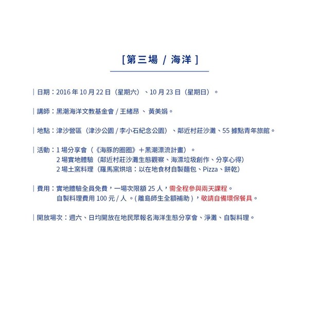 津沙起學堂第三場活動-海洋10/22~23 報名中!! --閱讀人次 : 852 [秋季遠足]-第三場-海洋 (需預先報名)
