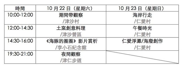 |地點:津沙營區(津沙公園 / 李小石紀念公園)、鄰近村莊沙灘、55據點青年旅館。