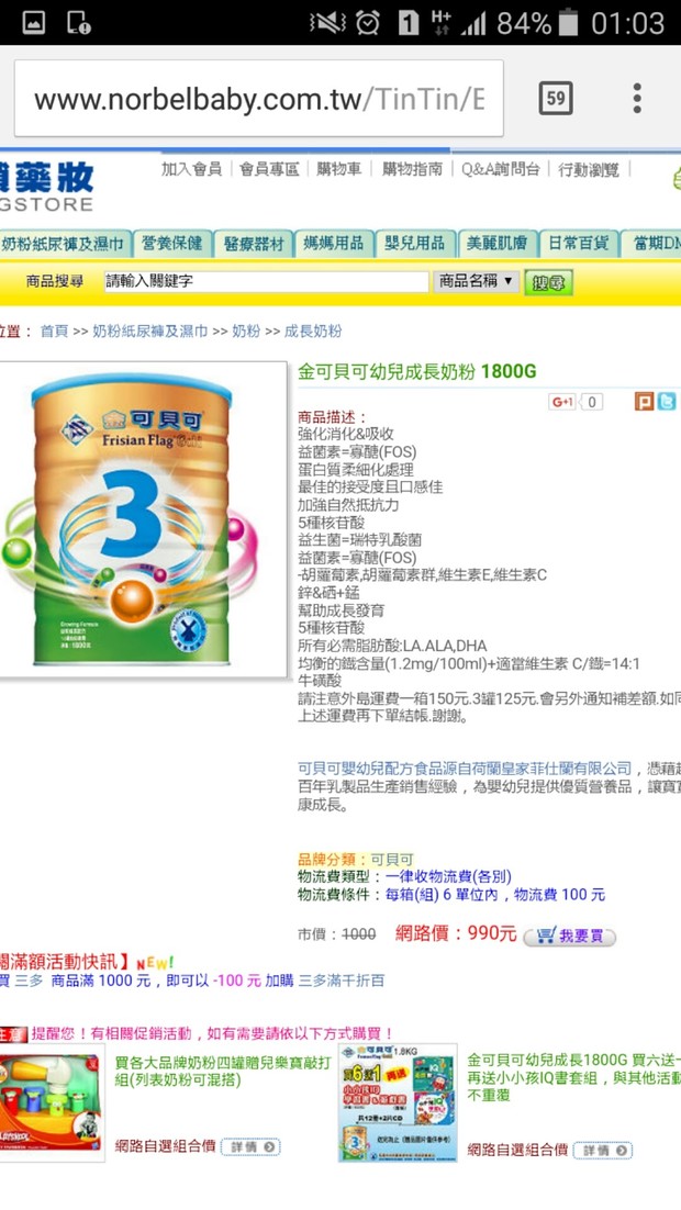 賠售!金可貝可3號一箱4100元,大罐1800g,共6罐