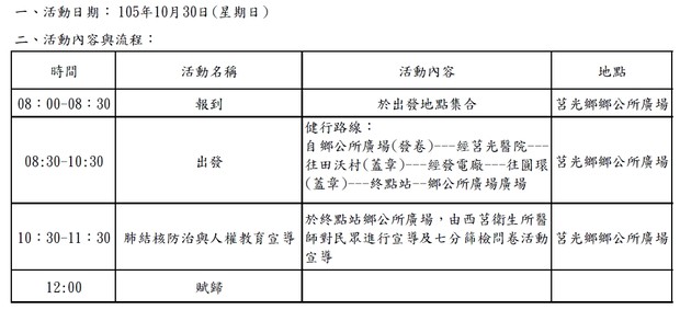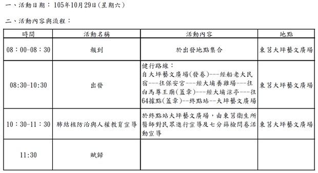 105年10月29.30日莒光健行流程表