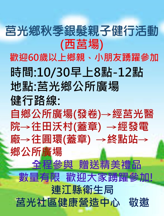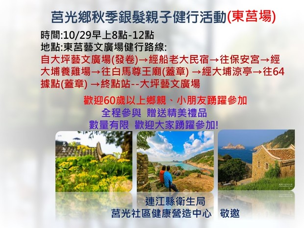 莒光鄉秋季銀髮親子健行活動 29.30日溫馨登場