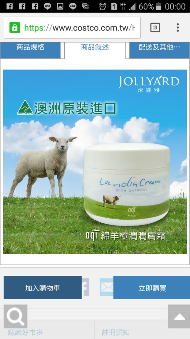 好市多澳洲原裝-潔麗雅(綿羊潤膚霜)299元/瓶 --閱讀人次 : 3291 澳洲原裝進口-潔麗雅(綿羊潤膚霜)299元/瓶。