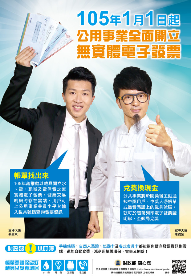 國稅局宣導:公用事業開立電子發票 --閱讀人次 : 655 自今(105)年1月1日開始,公用事業全面開立無實體電子發票