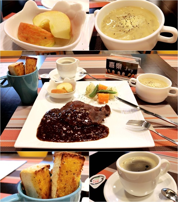 餐前麵包+濃湯+主餐+水果+飲品