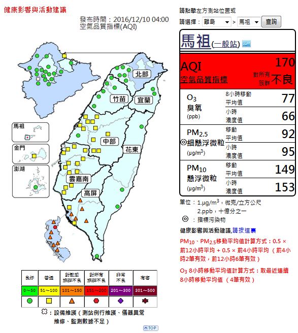 12/9晚間起,馬祖空污進入「紅色警戒」,請留意