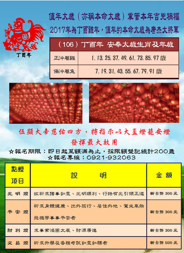 現場開放丁酉年點燈登記,數量有限(將近額滿,請把握最後現餘數量登記)