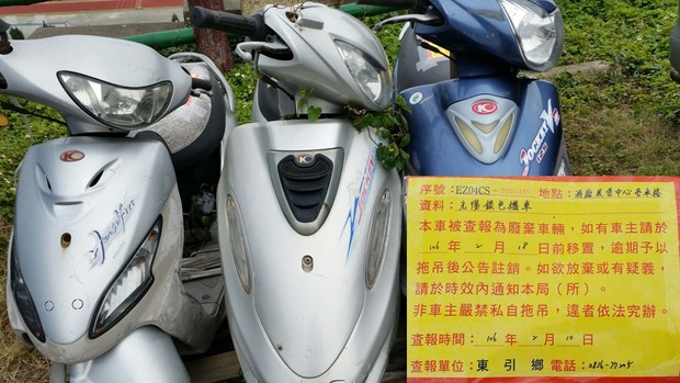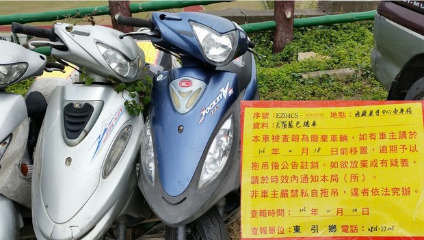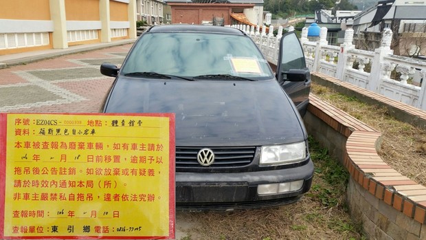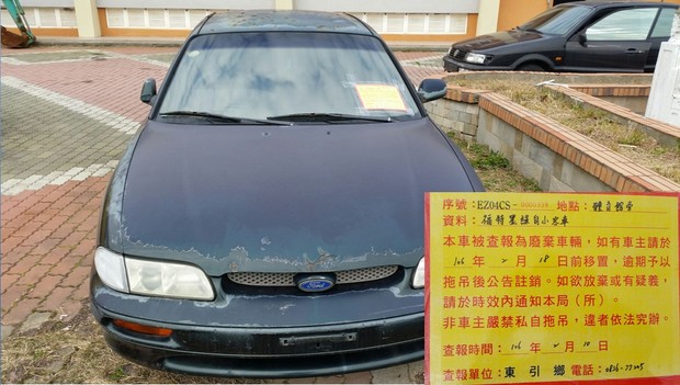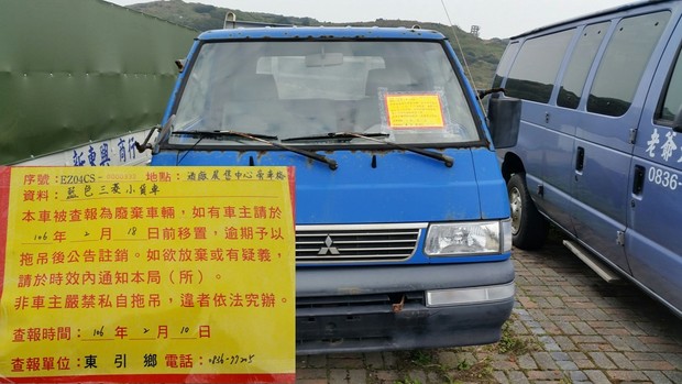 東引鄉公所張貼查報廢棄車輛乙批 --閱讀人次 : 1551 一、被查報為廢棄無牌車輛,如有車主者請於106年2月18日前移置,逾期本所將發文請縣府環保局予以拖吊後公告註銷。