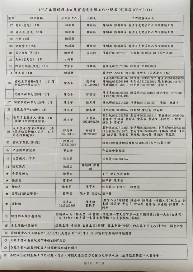 106年2月13日(農曆正月十七)為山隴境北極玄天宮祈福遶境,