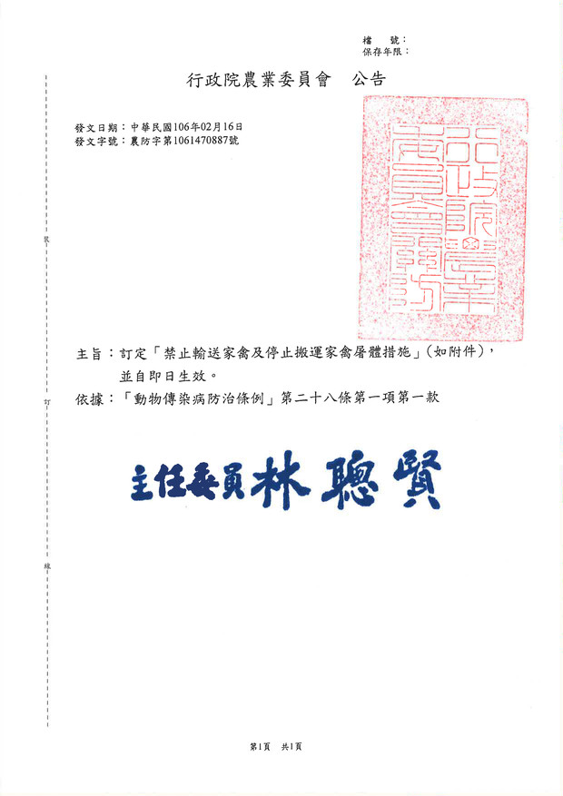 為配合農委會106年2月16日農防字第1061470887號公告及