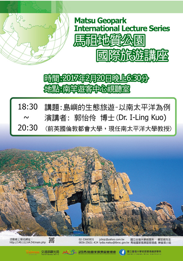 2月20日馬祖地質公園國際旅遊講座 --閱讀人次 : 750 馬祖地質公園國際旅遊講座:島嶼的生態旅遊-以南太平洋為例