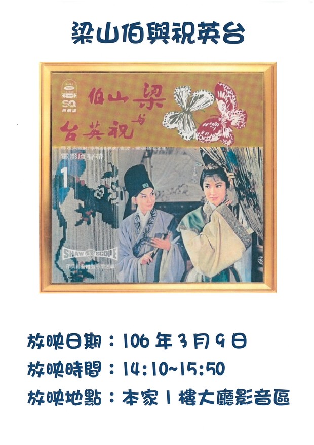 3/9 請來大同之家一起看"梁山伯與祝英台" --閱讀人次 : 630