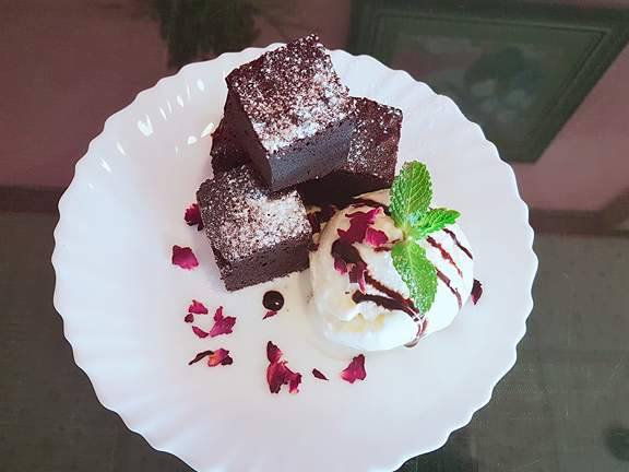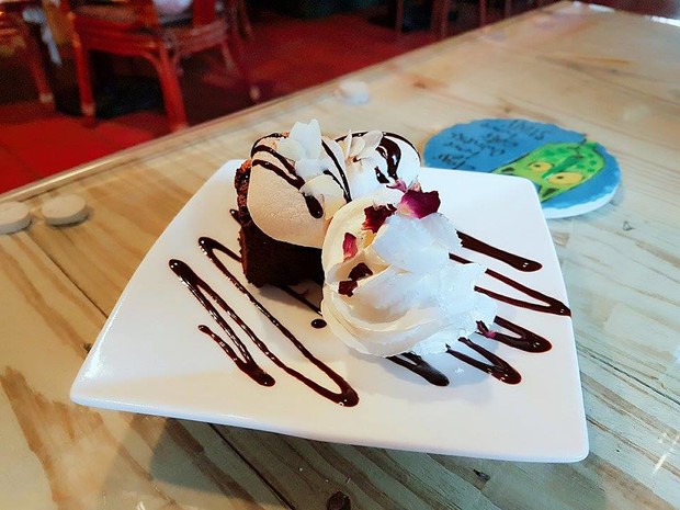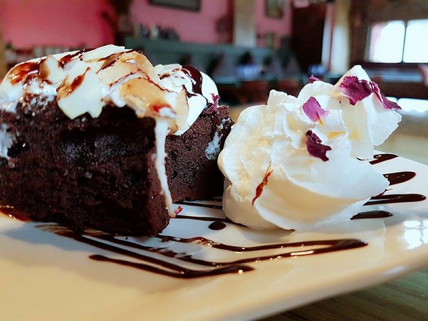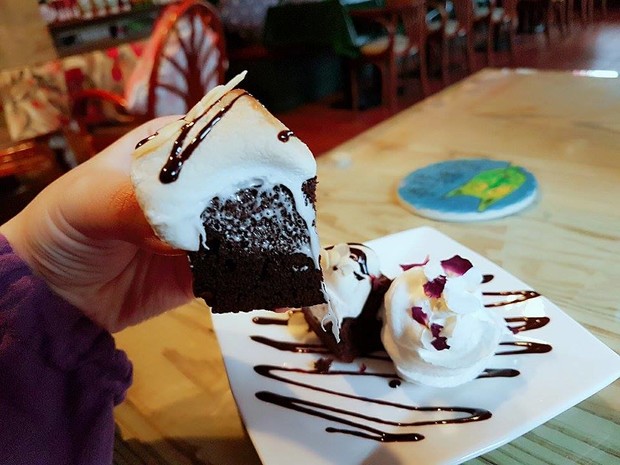 熱呼呼香濃的布朗尼搭配厚實的棉花糖~配上甜而不膩口的鮮奶油一口咬下