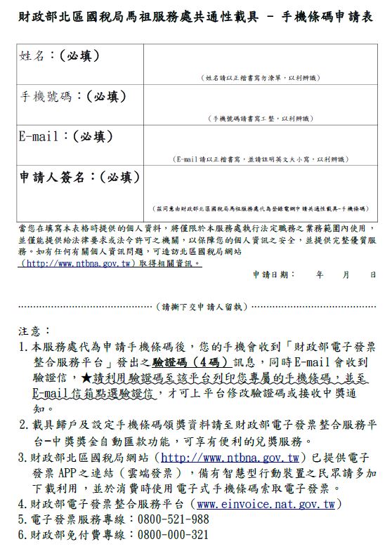 可自行下載檔案並傳真至(0836)25857,即可辦理。