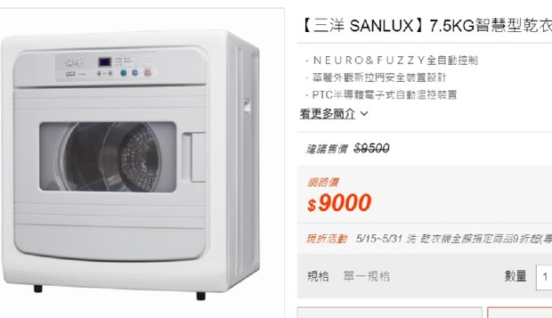 全新未使用三洋 7.5公斤烘衣機