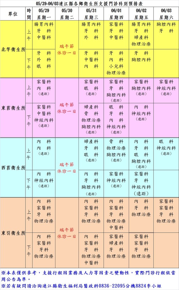 0515-0520各鄉衛生所支援科別門診預排表
