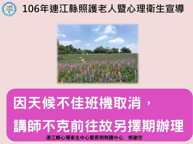 6/1-6/4照護老人暨心理衛生宣導取消擇期辦理
