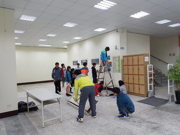 辛苦的佈展志工九年級同學