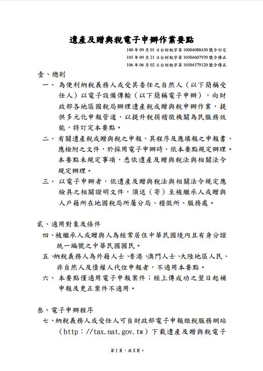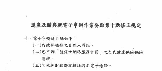 為增加遺贈稅網路申報便利性,財政部6月初宣布修正「遺產及贈與稅電子申辦作業要點」,將在7月1日生效上路,開放民眾不只可使用