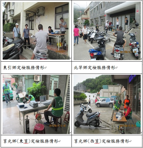 環資局也提醒車輛位於南竿鄉地區之車主,依空氣污染防制法規定,使用滿5年的機車,每年需要依出廠月份前後一個月實施排氣檢驗,環資局每月皆會寄發定檢明信片提醒車主定檢資訊,車主可至機車排氣定期檢驗站(鼎鑫機車行:南竿鄉復興村25之4號)及(良健機車行:南竿鄉介壽村72號)進行檢驗,不合格者請盡快將車子送至機車行進行調修及保養工作,調整至最佳狀態後於一個月內進行複驗作業,以避免受罰。