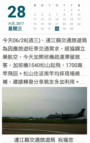 加班機:松山下午3時40分起飛、南竿下午5時飛回