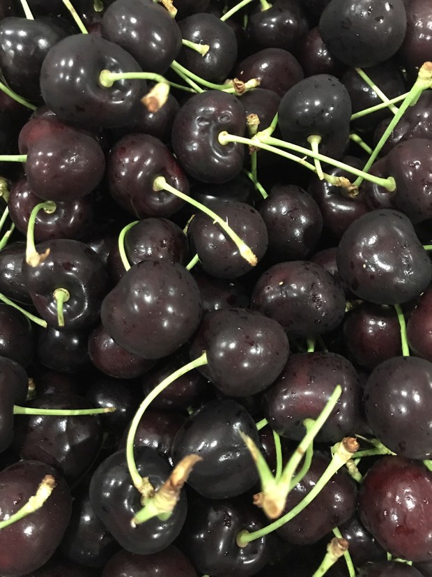 非常漂亮的櫻桃、紫黑紫黑的,脆甜可口