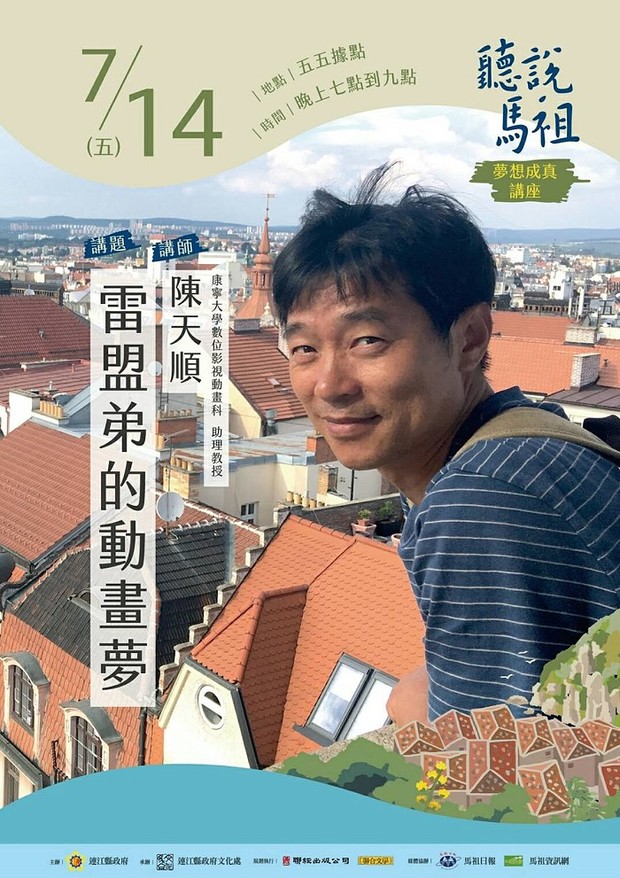 文化處表示,雷盟弟的動畫夢預定7月14日晚間7時在五五據點(連江縣南竿鄉津沙村150號)開講,陳天順將於講座中分享自己如何走向從事動畫工作的道路,以及近期與動畫相關的計畫,歡迎鄉親踴躍前往聆聽。