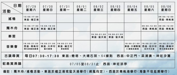 這次更將海洋音樂會,邀請演唱老歌及民歌歌手,走進東西莒各村落,讓你在家門前,就可以享受悠悠之音樂。