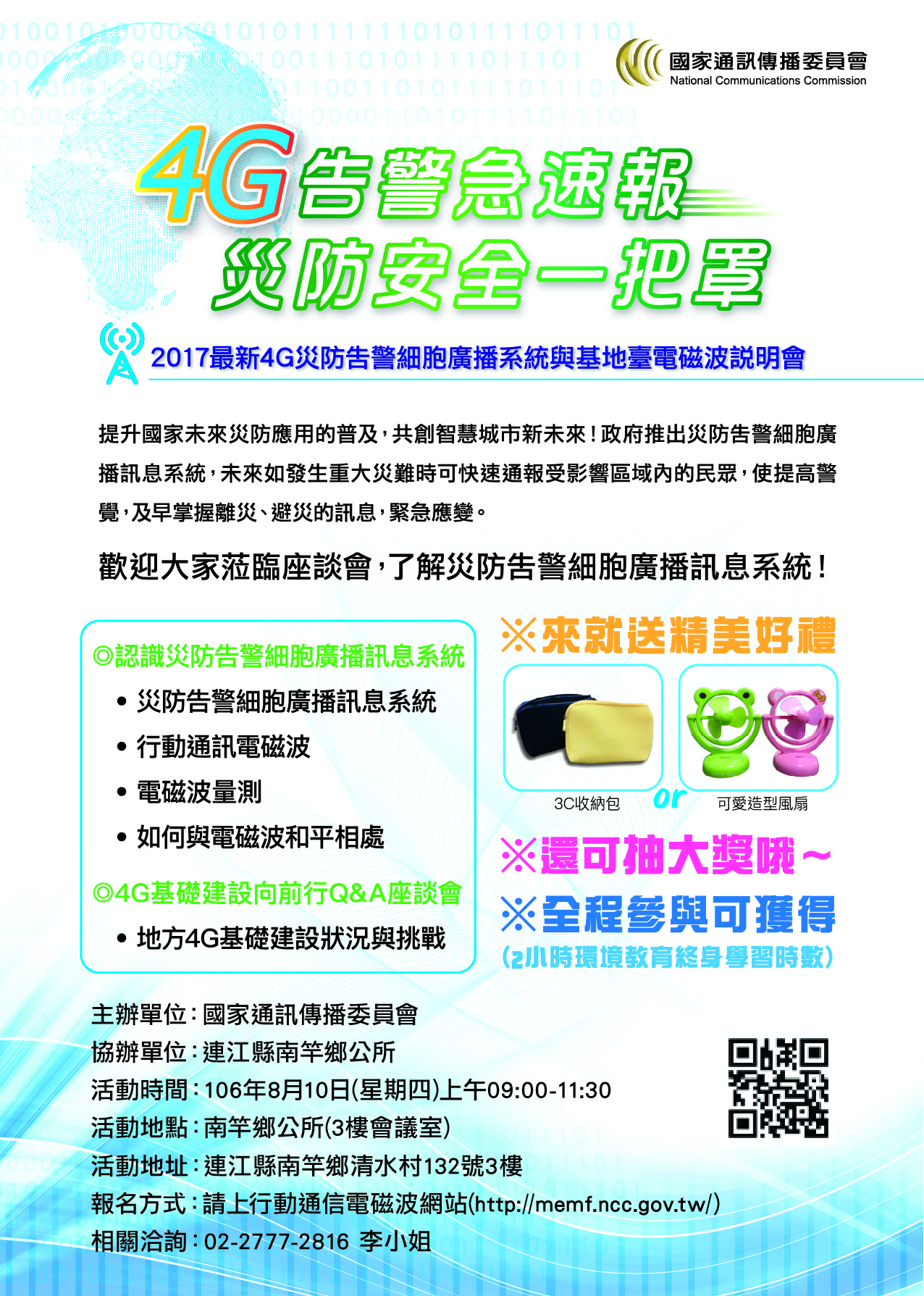 歡迎大家蒞臨座談會,了解災防告警細胞廣播系統!