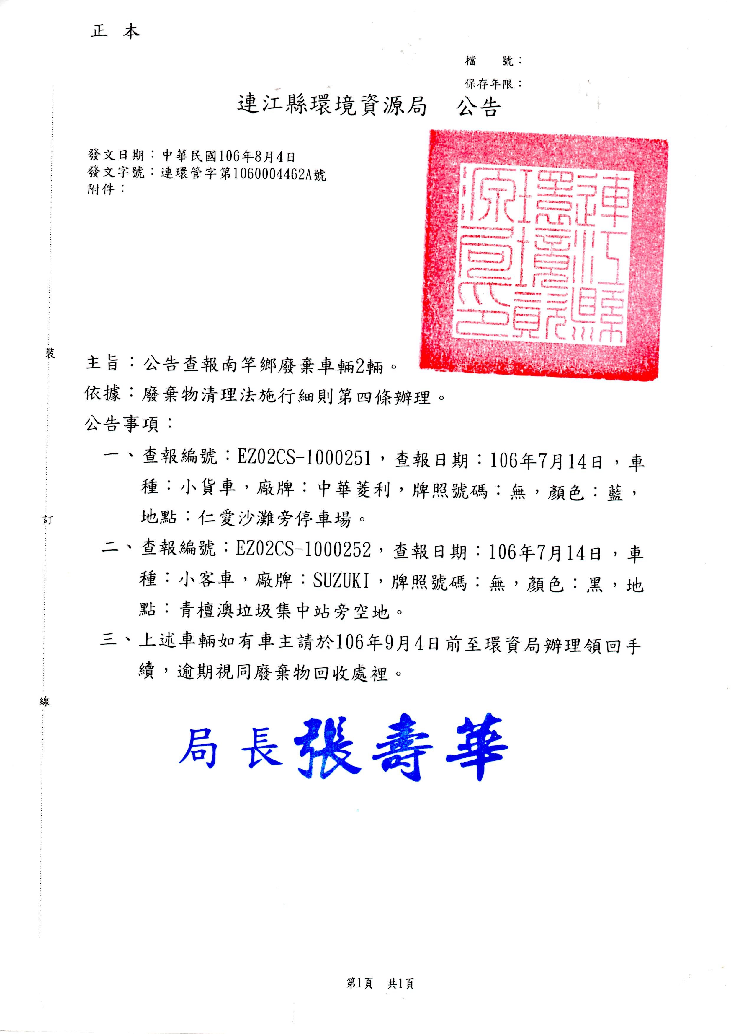 南竿鄉張貼查報廢車一批
