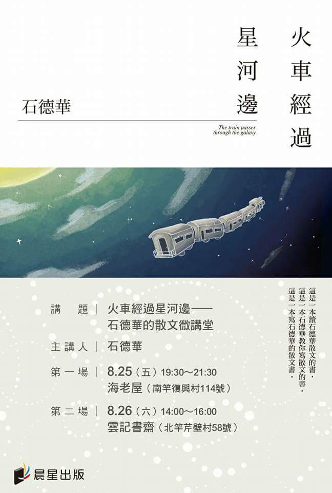 《火車經過星河邊》石德華 新書分享8‧25〈五〉19:30 在海老屋