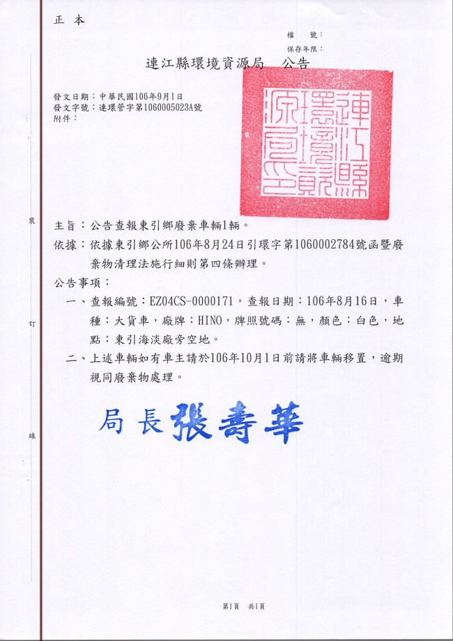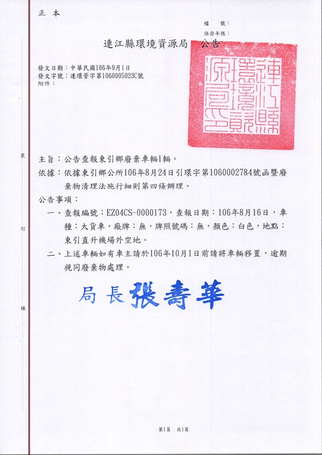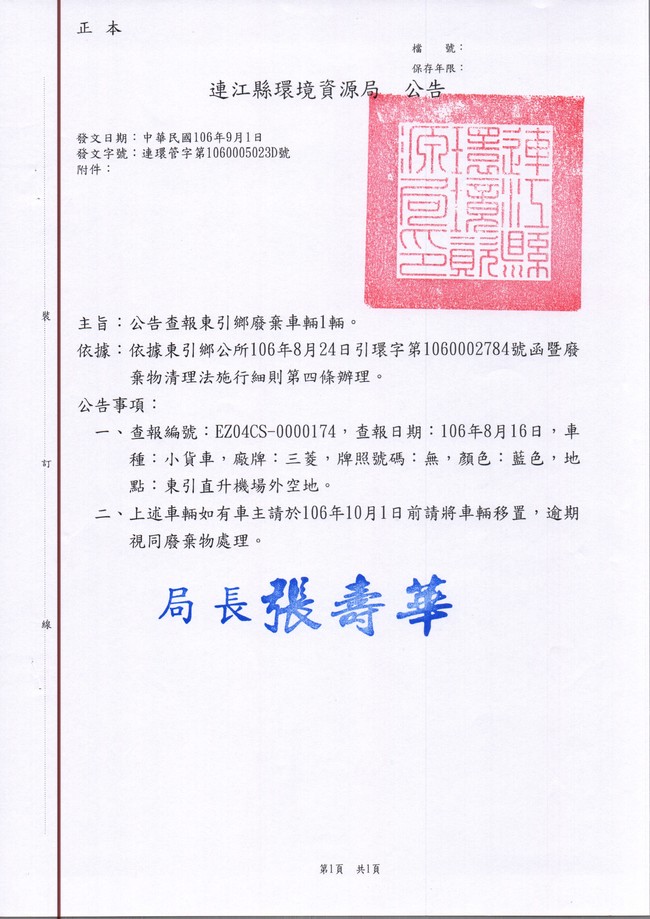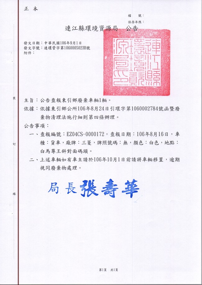 東引鄉張貼查報廢車一批
