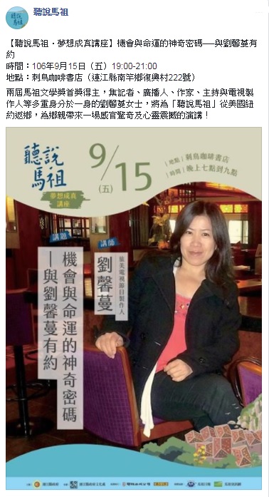 聽說馬祖.夢想成真講座 與劉馨蔓有約 --閱讀人次 : 1645