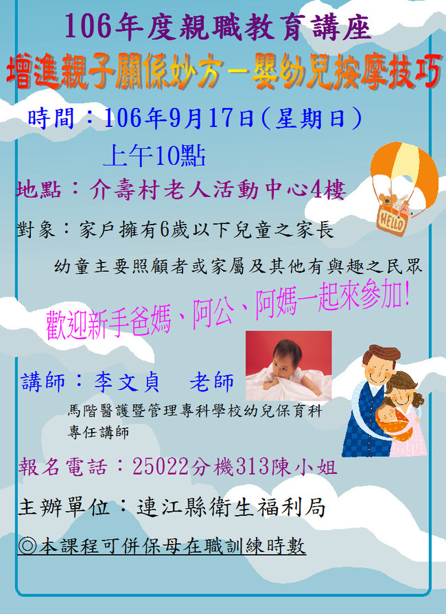 增進親子關係妙方-嬰幼兒按摩技巧講座