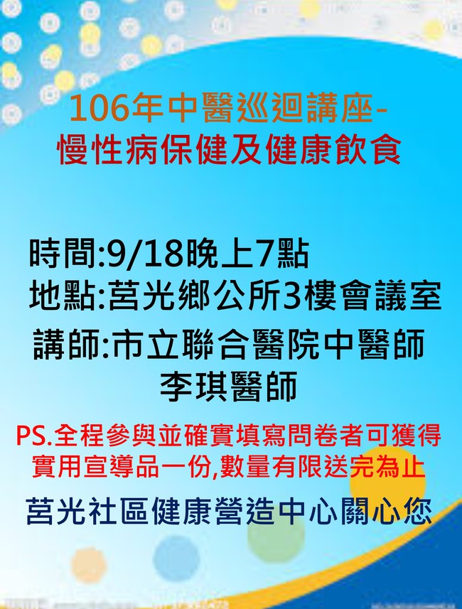 中醫巡迴講座:慢性病保健及健康飲食-西莒