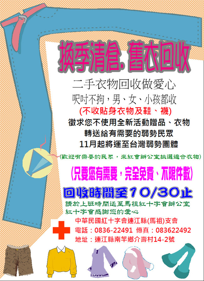 馬祖紅十字會二手衣物回收至10/30止