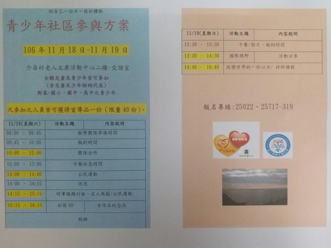 106年青少年社會(社區)參與方案培力營 --閱讀人次 : 769 連江縣106年青少年社會(社區)參與方案暨兒童及少年諮詢代表培力營