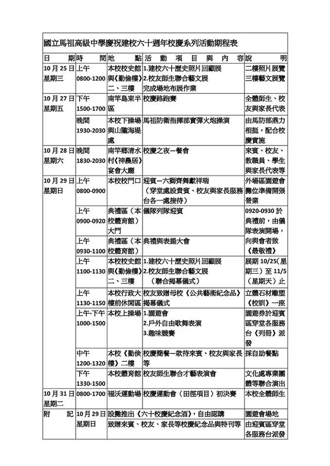 馬中六十校慶運動會 --閱讀人次 : 526 親愛的校友們:
