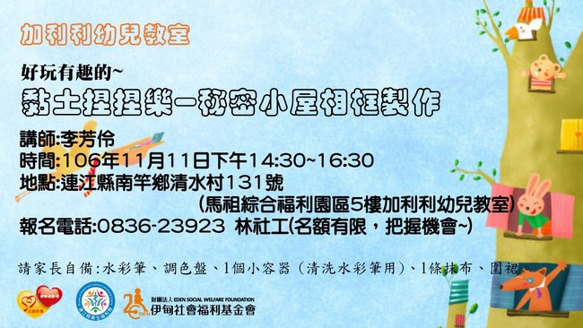 3.地點:連江縣南竿鄉清水村131號(馬祖綜合福利園區5樓加利利幼兒教室)
