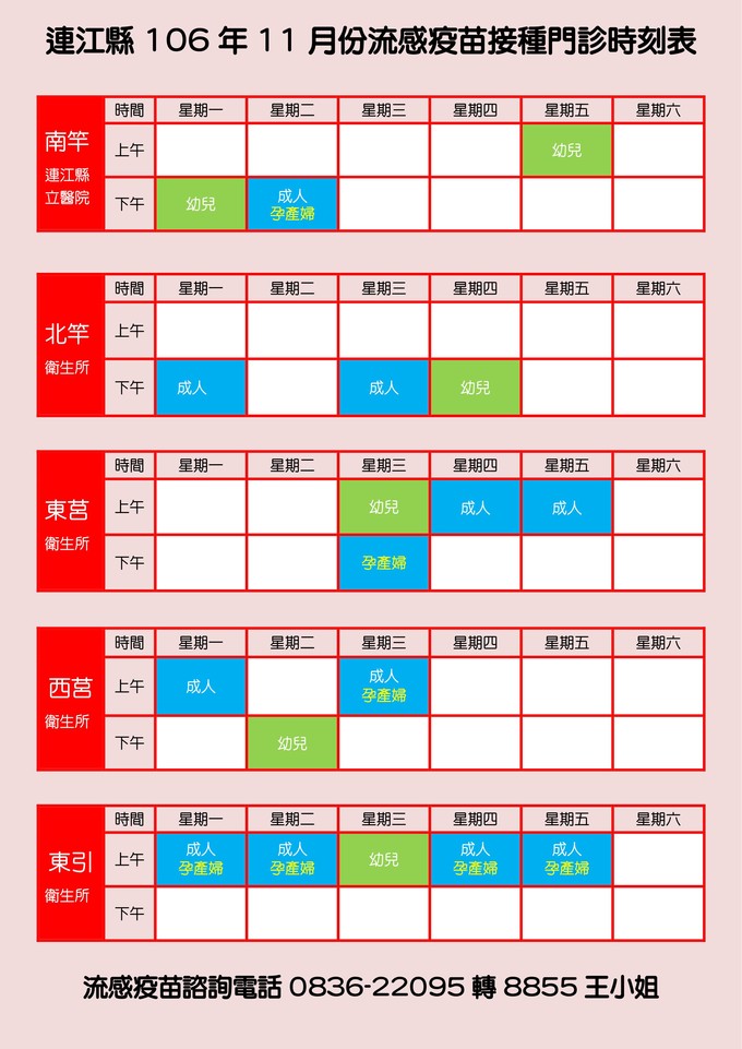 2017年連江縣衛生福利局邀您一起「打疫苗●抗流感●搶乖乖●抽大獎」,本活動抽獎部分,於每週五抽出10位幸運兒,自10月6日起連續9周,越早接種中獎機會越多喔!請每週一密切注意馬祖資訊網、馬祖日報電子報、連江縣衛生福利局官網及連江縣衛生福利局臉書粉絲專頁公佈中獎名單。