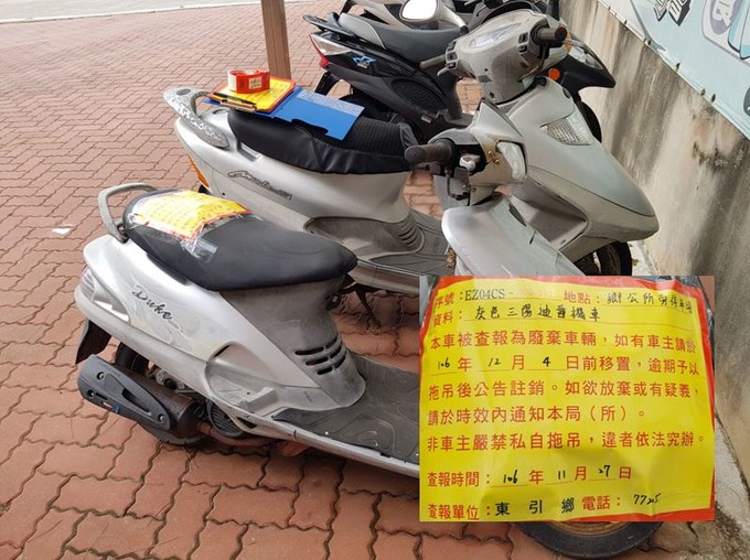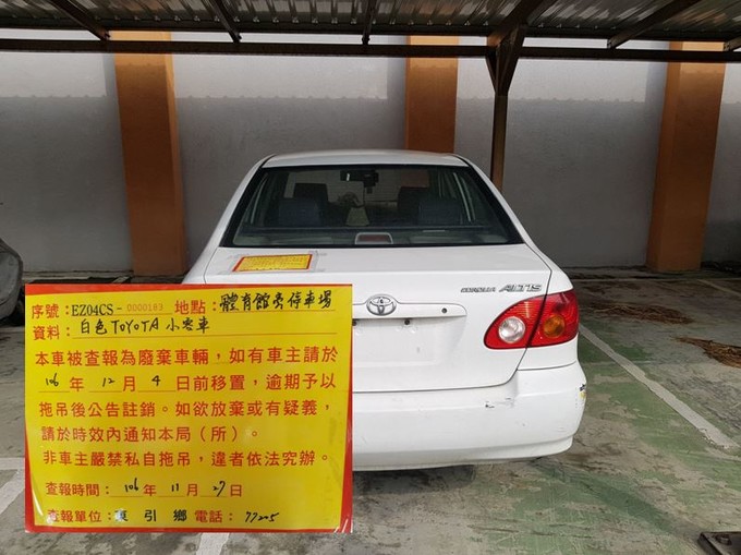 一、被查報為廢棄無牌車輛,如有車主者請於106年12月4日前移置,逾期本所將發文請縣府環資局予以拖吊後公告註銷。