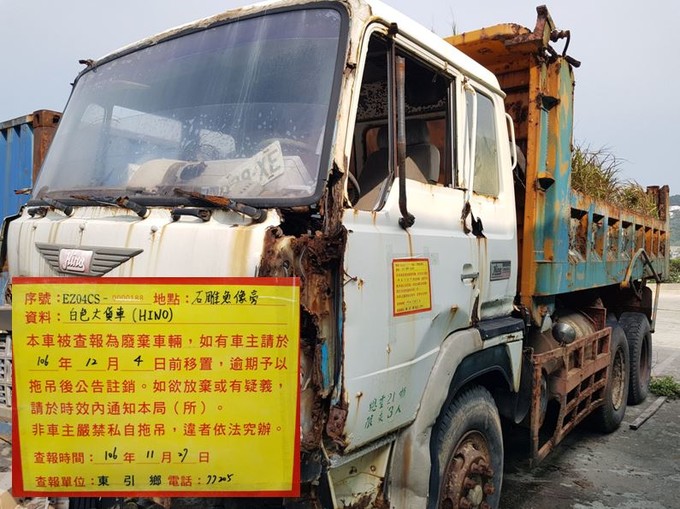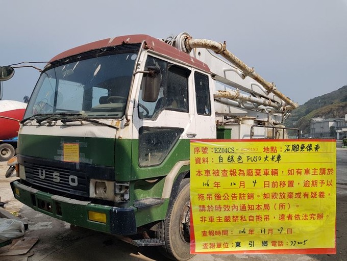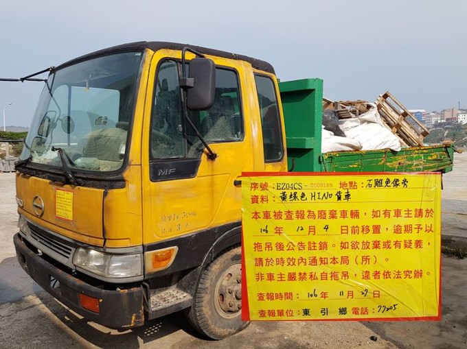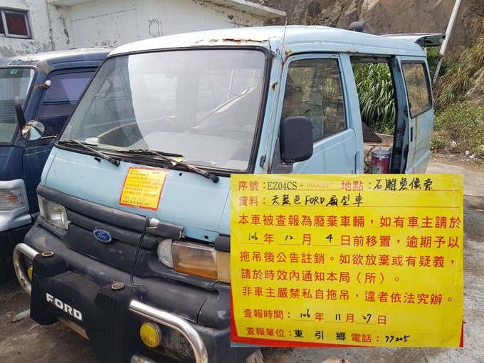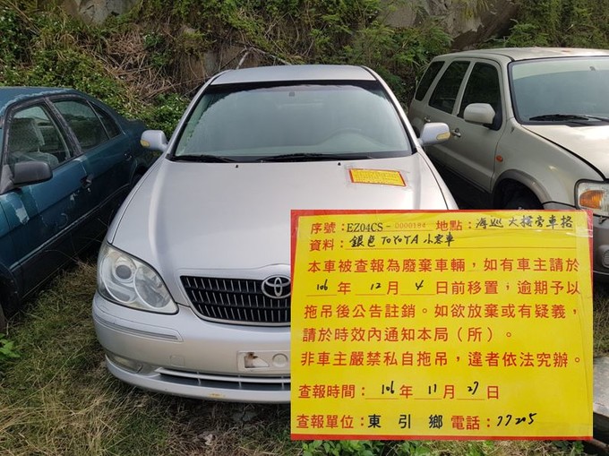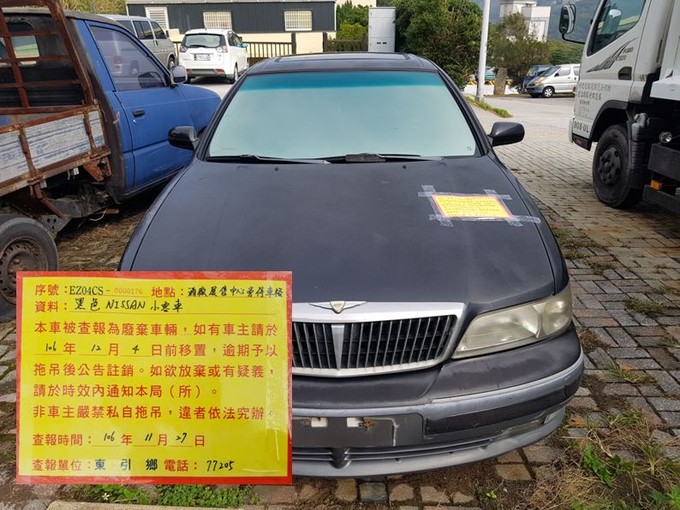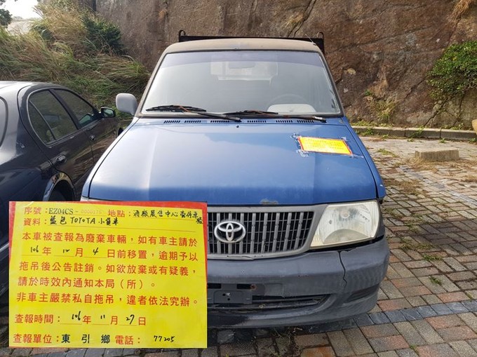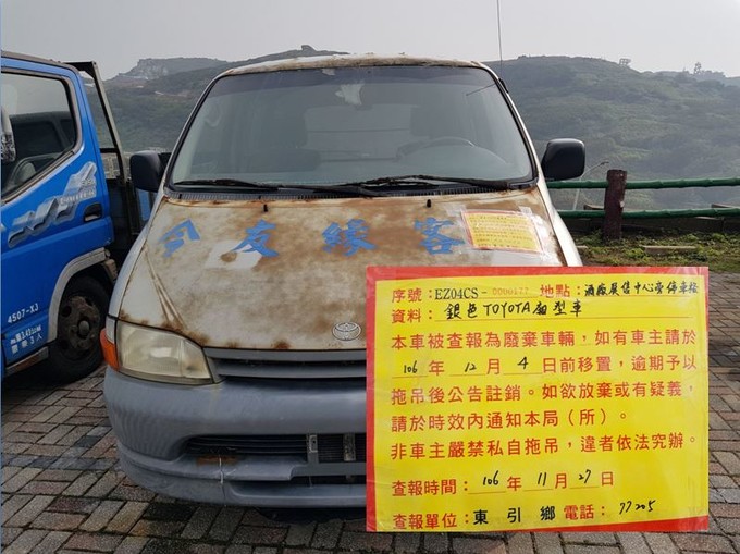 東引鄉公所張貼查報廢棄車輛乙批