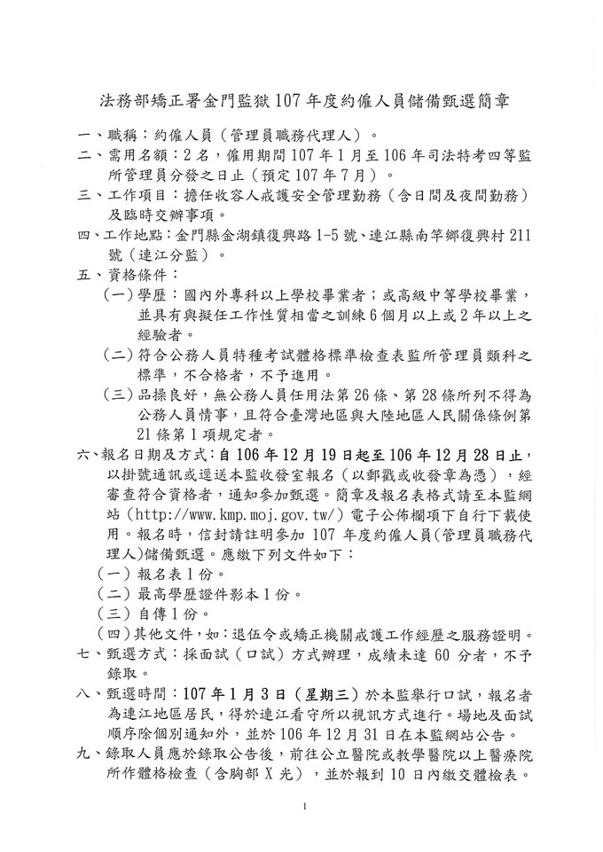 連江分監徵才-連江就業中心