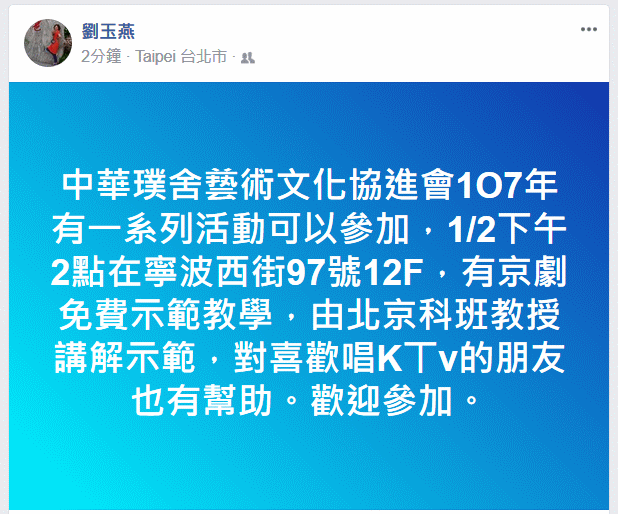 璞舍兿術文協京劇免費示範教學等活動