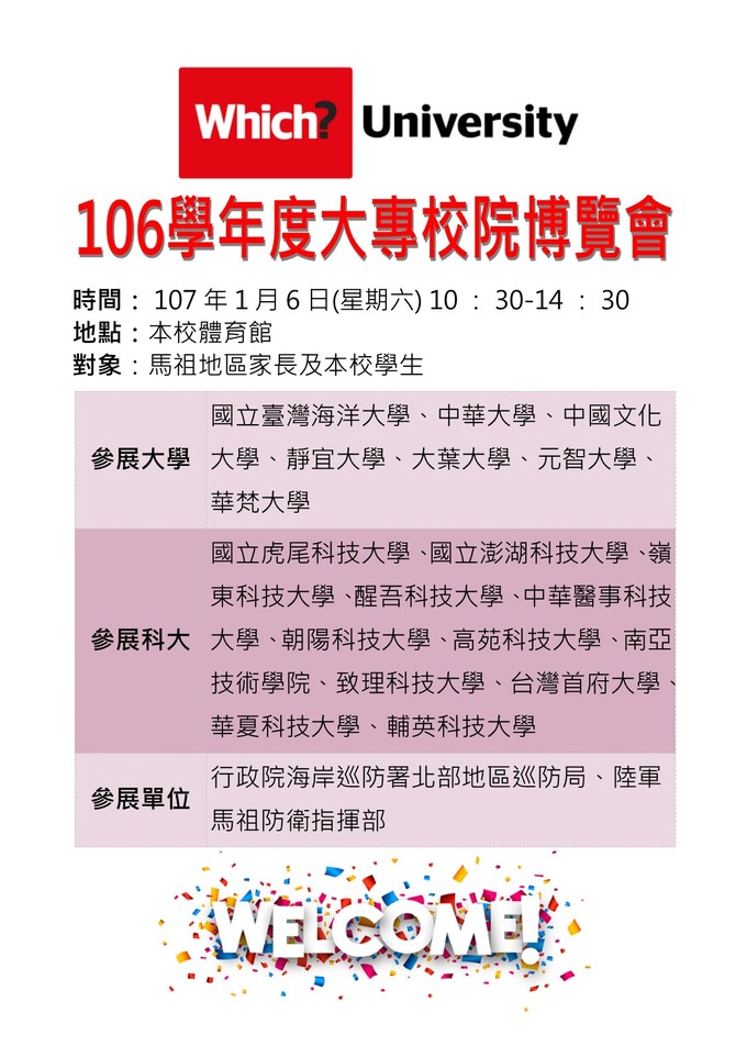 1/6大專校院升學博覽會在馬中體育館 --閱讀人次 : 599