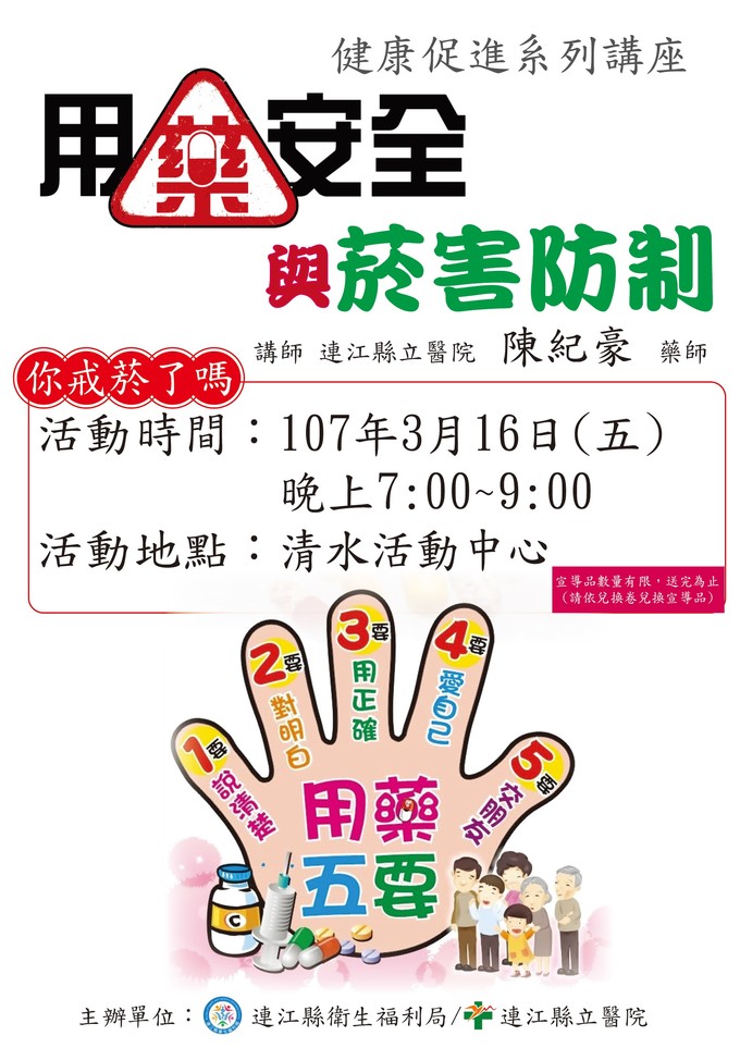 今晚 7 點-用藥安全與菸害防制宣導講座