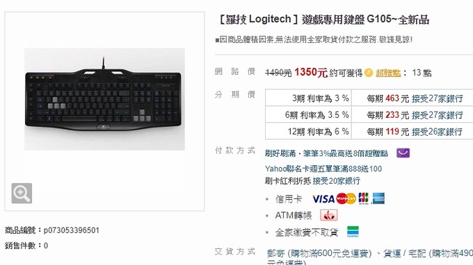 ▼Logitech 羅技 G105 遊戲鍵盤(全新)售價1200-1500,出清價800元...售出